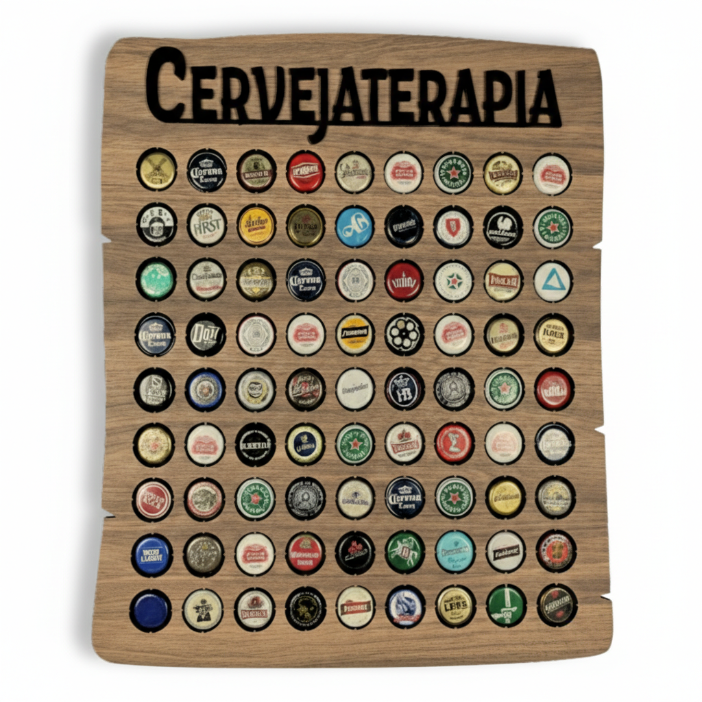 Quadro Porta Tampinhas Cervejaterapia - Linha Rustic -80 Tampinhas